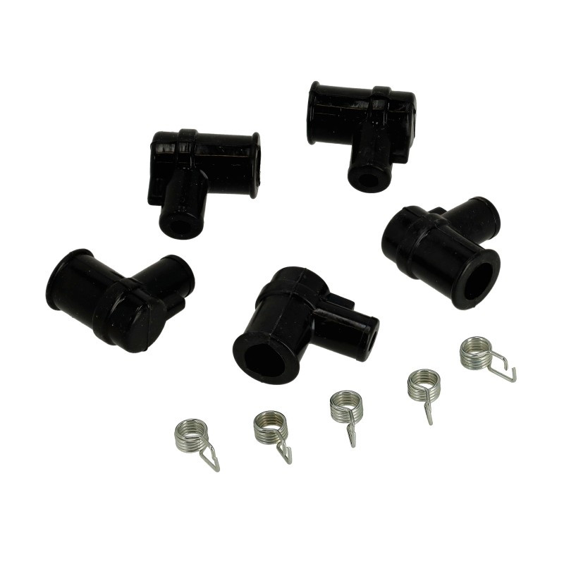 Láncfűrész gyertyapipa rugóval kompletten, 5 darabos csomagolásban.Külső átmérők:12,8/9 mmBelső átmérők:5 mm