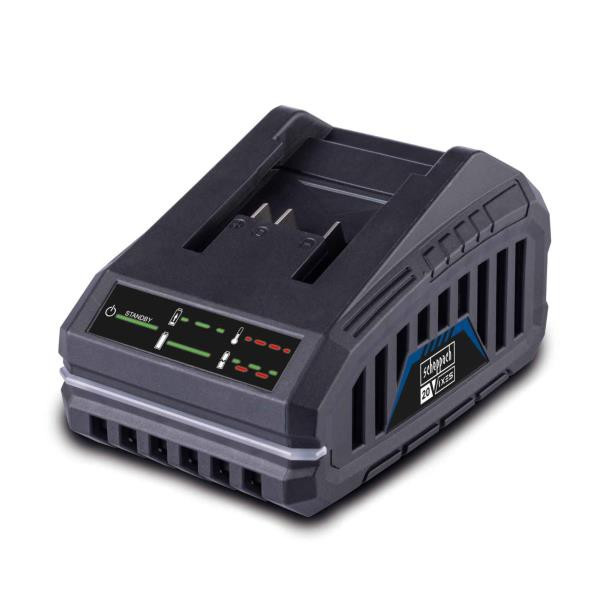 A Scheppach SBC2.4A egy kompakt gyorstöltő, amely az IXES gépcsalád összes 20 V-os Scheppach Li-ion akkumulátorát képes tölteni. Ez egy modern intelligens töltő, amely figyeli az egyes cellák állapotát, hőmérsékletét és feszültségét, és ennek megfelelően szabályozza a töltésüket. Ennek eredményeként az akkumulátor élettartama jelentősen megnő, és az akkumulátor töltési ciklusainak száma maximalizálódik. A töltő LED kijelzőkkel rendelkezik, amelyek jelzik a töltés állapotát és az esetleges hibaüzeneteket. Egy 2,0 Ah-s akkumulátort körülbelül 60 perc alatt, míg egy 4,0 Ah-s akkumulátort 120 perc alatt tölthet fel. A töltőt a munkaasztalra helyezheti, vagy a falra akaszthatja a beépített tartó segítségével.