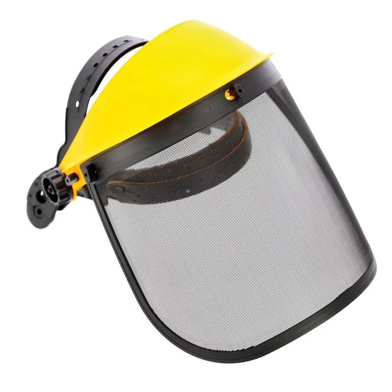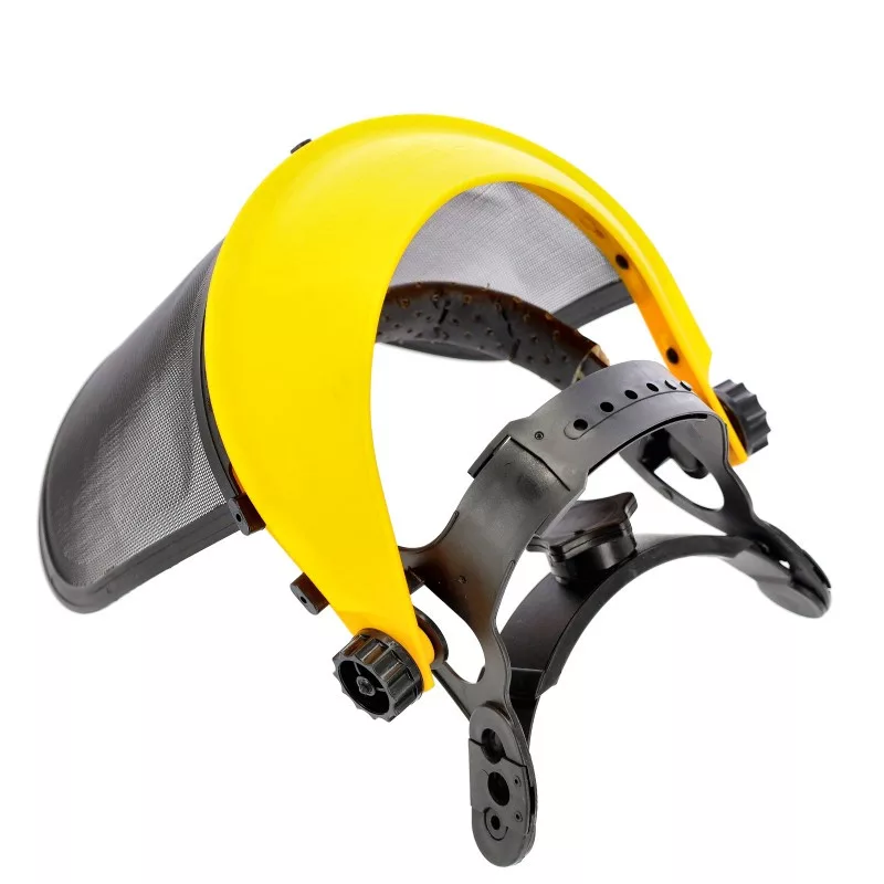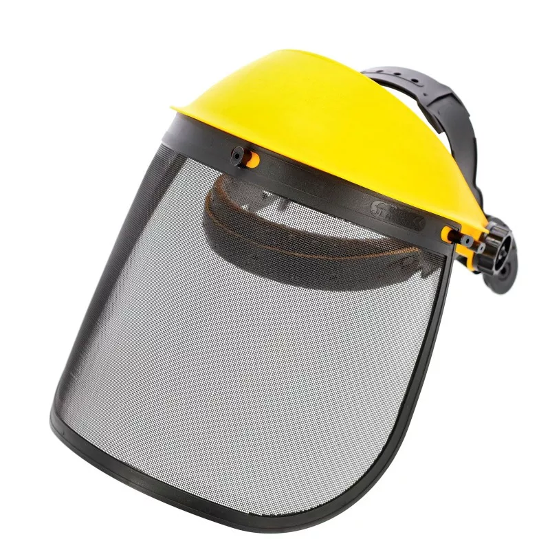 Az arc elé helyezhető arcvédők a munkavédelmi szemüvegekkel szemben a teljes arcot eltakarják, ezáltal sokkal teljesebb lehet a védelem a különféle felverődő, pattanó, fröccsenő behatásokkal szemben. Felhasználási területtől függően plexi vagy rácsos (hálós) látómezők kerülhetnek az arc elé, illetve egyes változatait lehet munkavédelmi sisakra is csatlakoztatni.Lehetnek olyan munkafolyamatok, felhasználási területek, ahol nagyobb méretű szilánkok, darabkák elleni védelem szükséges, a munkavédelmi szempontokat betartó fakitermelő/faipari dolgozókon, fűkaszával tevékenykedő embereken gyakran látni dróthálós védőálarcot. Kaszálásnál is felpattanhat egy kavicsdarab, vagy egy szétvágott ág részei, melyektől óvni kell az arcot, szemet.Kivitel:állítható fejpántosArcvédő:szita szövésű dróthálóPótlap cikkszáma:S-5120912/2Termék típusa:Védőálarc / arcvédőKivitel:Szitaszövésű (hálós)Szín:Sárga (fejpánt / keret)Állíthatóság:Igen, fokozatmentesen vagy lépcsősen állítható fejpántArcvédő:fém vagy nagy szilárdságú műanyag szitaszövetFejpánt:műanyagLátómező:Széles, torzításmentesSzellőzés:Kiváló, párásodásmentes kialakításRögzítés:Fejre szerelhető, sisak nélkül használhatóFelhasználási terület:Kertészet,Erdészet,Fűkaszálás, bozótvágás,Védelmi funkció:Mechanikai részecskék ellen (nem alkalmas vegyi gázok, füst vagy finom por ellen)Típusok: Több gyártmány: