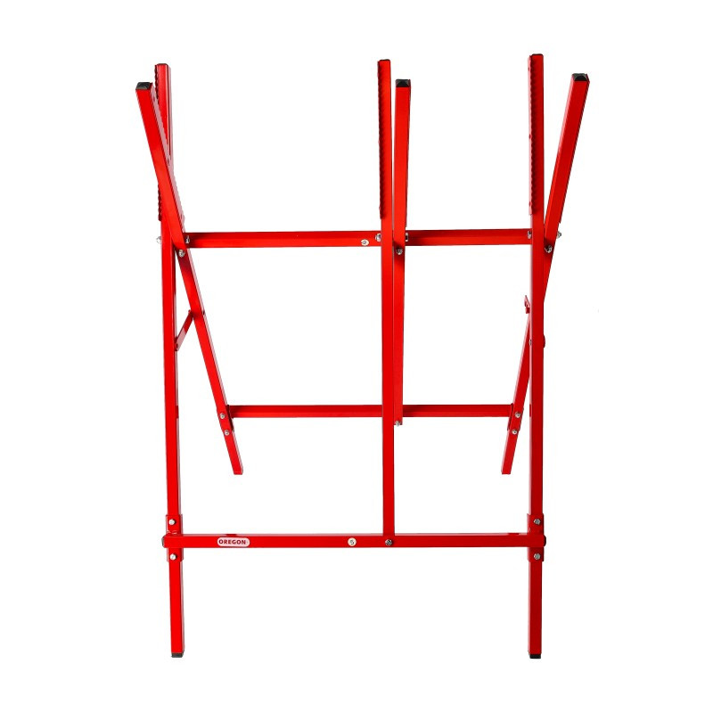 Könnyen hordozható, telepíthető és tárolható.Egyszerűen összecsukható, ezáltal tárolása kevés helyet igényel.A doboz tartalmazza az összeszerelési utasításokat.Az Oregon 584145 egy összecsukható, könnyű acélból készült favágó állvány / fűrészbak, amelyet kifejezetten faanyagok – például tűzifa – biztonságos és kényelmes vágásához terveztek láncfűrésszel vagy kézifűrésszel. Segítségével stabilan tarthatod a hasítandó rönköket, így csökken a munka kockázata és javul a vágás pontossága.Fő előnyök:Összecsukható és könnyen szállítható – egyszerűen tárolható és helyszíni munkákhoz ideális.Fogazott felső élek – a bak fogai segítenek megtartani a fát vágás közben stabilan.Alkalmas láncfűrészes használatra – jól használható láncfűrész mellett hagyományos fűrészekkel is.Festett acél kivitel – ellenáll a rozsdának és a kültéri igénybevételnek.Maximális terhelés:80 kgAnyag:Fém / acél szerkezetVágandó fa max. vastagsága:kb. 27 cm (270 mm)Caomagméret:1032 x 180 x 86 mmTípusok: Oregon: