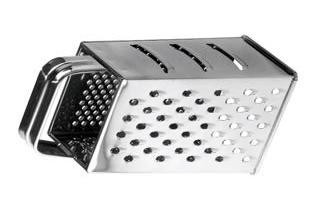 Klasszikus négyszög alakú reszelő az összes hagyományos funkcióval, tetején nagy méretű fogantyúval.