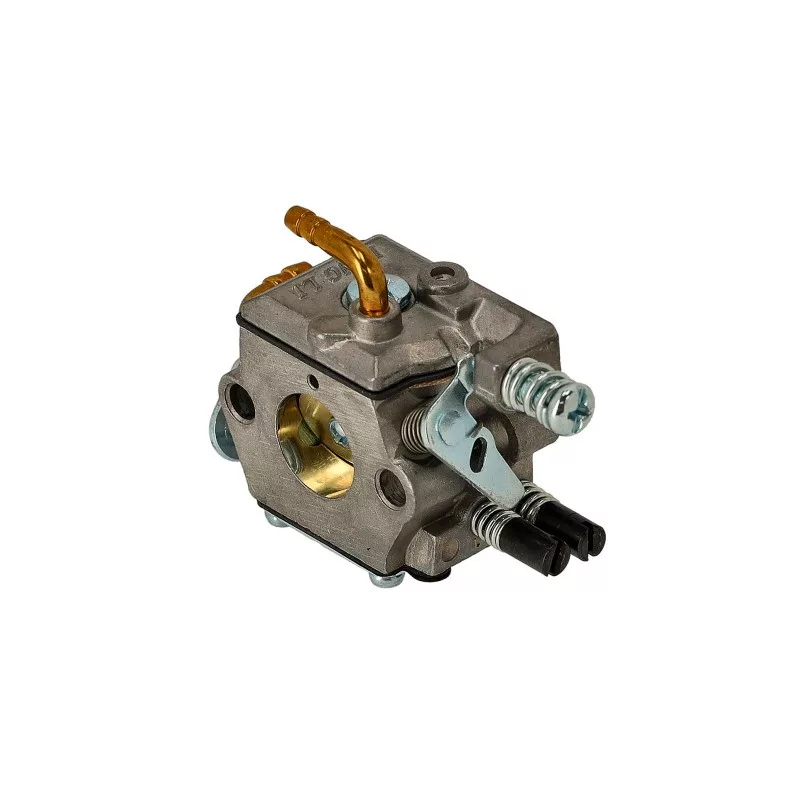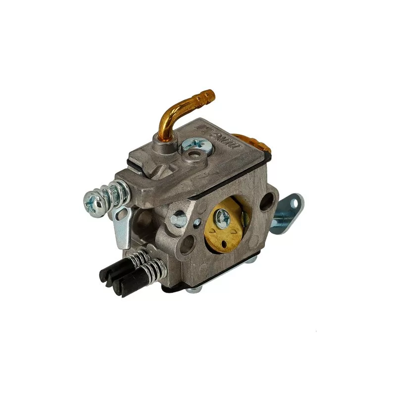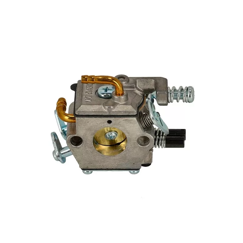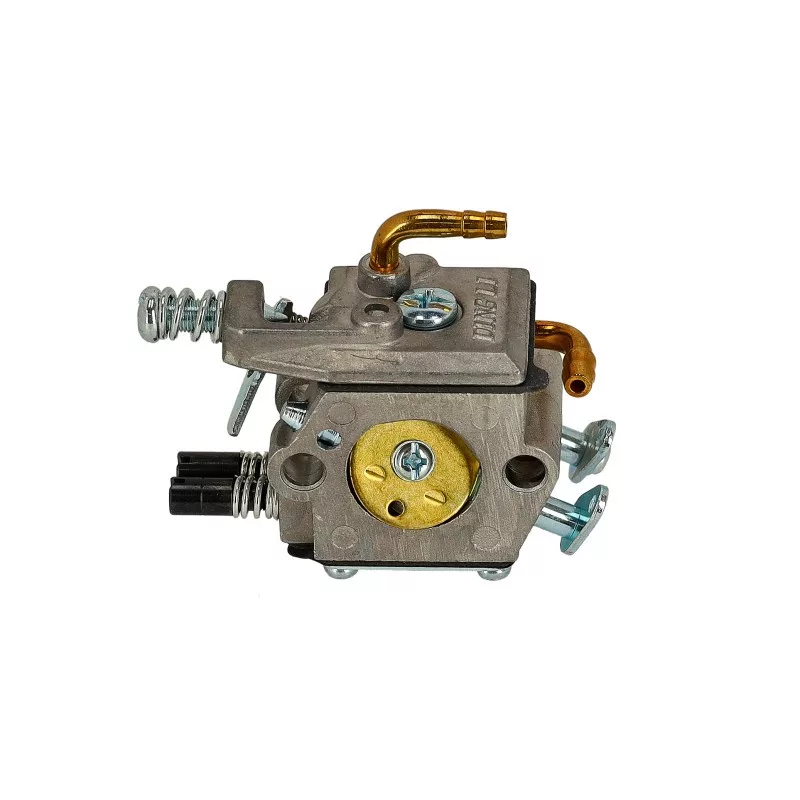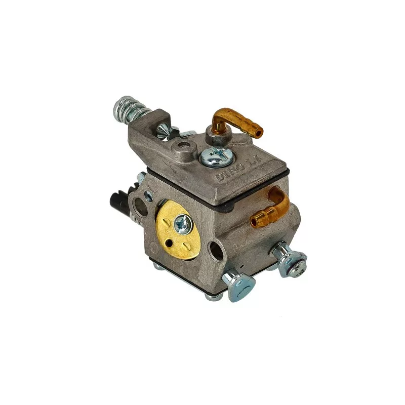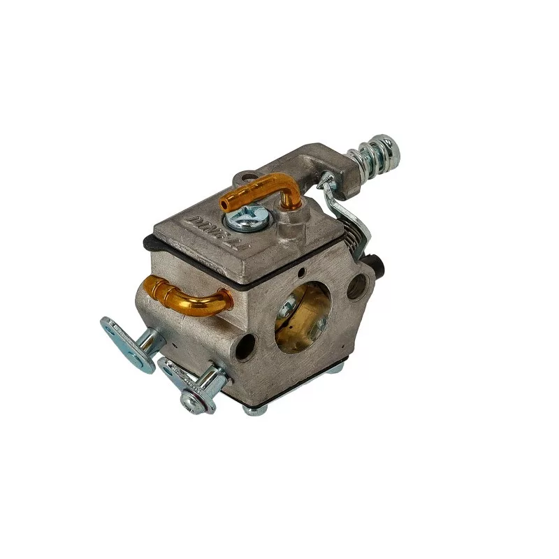 G-4500 típusú láncfűrészhez karburátor komplett.Karburátor javító készlete: US-18149A G-4500 típusú kínai motorokhoz készült komplett karburátor a megfelelő üzemanyag–levegő keverék biztosításáért felelős, ezáltal hozzájárul a motor stabil működéséhez, könnyű indíthatóságához és optimális teljesítményéhez. A karburátor gyári kialakítású, utángyártott alkatrész, amely teljes egységként kerül szállításra, így közvetlenül beépíthetőSzívótorok légszűrő oldali átmérő:19 mmSzívótorok henger oldali átmérő:15,5 mmFelfogatási távolság furatközép-furatközép légszűrő oldal:25,5 mmFelfogatási távolság furatközép-furatközép henger oldal:25,5 mmCsatlakozó csonk átmérő:4 mmKarburátor típusa:membrános