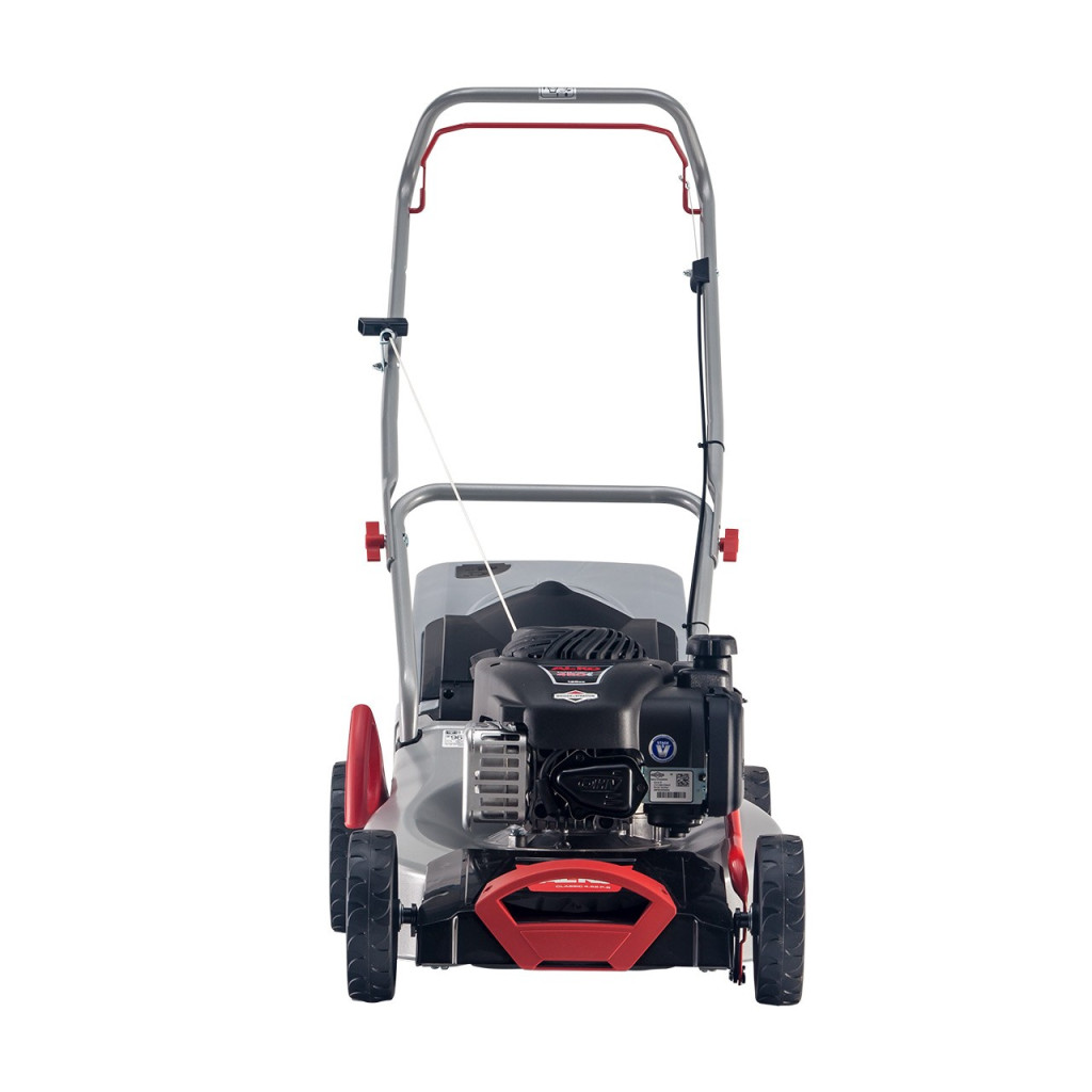 B&S 450 E, 2,5 LE*, 46cm,65l, 1100 m2,központi magasságállítás 7 fokozatban,duplán golyóscsapágyazott XL kerekekszabadalmaztatott aszimmetrikus ház (szegélyek nyírásához), ergonómikus kapcsoló, tolókar magasság állítás 2 fokozatban, 3 az 1-ben mulcsozás-gyűjtés-rendrakás, ideális áramlási csatorna - tökéletes gyűjtési teljesítmény, fűgyűjtő telítettség jelző, 3 év garancia, , Made in Austria 58x58x88cm 320