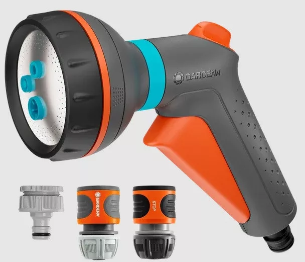 A GARDENA Classic Többfunkciós öntözőfej kezdő készlet vízmegállítóval négy sokoldalú vízsugárformával, UV- és alkalmi fagy elleni védelemmel rendelkezik a kertészeti szezonban; német minőség.