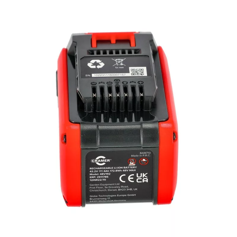 A Cramer 48V192 48V 4Ah akkumulátor robusztus kialakítású és a legújabb lítium-ion cellákkal rendelkezik a hosszú üzemidő és az optimális teljesítmény érdekében. Az akkumulátor kompatibilis az összes 48 V-os Cramer szerszámmal a teljes rugalmasság érdekében, és Bluetooth-kapcsolattal rendelkezik a Cramer Connect alkalmazással.-21 700 cella – nagyobb teljesítmény kisebb súly mellett.-Tökéletesen csatlakozik Bluetooth-on és kompatibilis a Cramer alkalmazással.-Beépített LED kijelző a töltés állapotához.-Gyors betöltés.-Nincs önkisülés.Feszültség: 48VNévleges kapacitás: 4 AhBluetooth: IgenFeszültség:48VNévleges kapacitás:4 AhBluetooth:IgenCsomag méret (Szélesség x Magasság x Mélység):90x145x95mmTípusok: Cramer: 48V192,