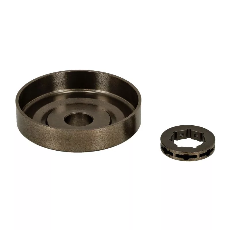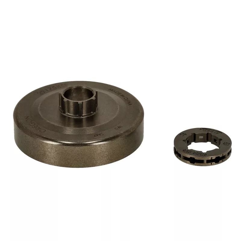 Husqvarna típusú láncfűrészekhez Oregon gyártmányú betétes csillagkerék, kis belsős fogasívvel, tűgörgő nélkül.A teljes csillagkerék rendszer tartalmaz egy bordás kuplungcsészét és egy cserélhető betétgyűrűs kereket. A betétgyűrű szabadon fut a bordán, maximalizálva a lánc-láncvezető illesztést, míg a gyűrű cserélhető, ami meghosszabbítja a csillagkerék rendszer élettartamát, és növeli annak értékét.A rendszer simább vágást biztosít, és csökkenti a lánc ugrások számét és a lánc kopását. Fogasív cikkszáma: 11892Tűgörgő cikkszáma: 11893Fixes kiváltója:38071XEredeti cikkszám: 505-3036-52Típusok:Husqvarna: 50, 51, 55, 55 Rancher, 154, 254 (before S/N 345-0001), 262 (before S/N 345-0001)Jonsered: 490, 590Partner: P400, P500, P545, P5000, P5100Poulan/Poulan Pro: 325Külső átmérő:73 mmBelső átmérő:69 mmKuplungdob szélessége:15,5 mmTengely átmérő:16 mmMagasság:27 mmFogasív osztása:325Fogasív fogszám:7Fogasív belső:kis belsős (SM7) 19 mmTípusok: Husqvarna: 254, 257, 262, 262XP, 50, 55, 51,