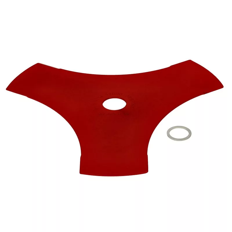 Univerzális 3 ágú bozótvágó penge, nagy területre, lágyszárú növényzethez.-Átalakító alumínium gyűrű van a csomagban, mellyel 20 milliméteresre szűkíthető a furat, hogy használható legyen minden bozótvágóhoz.-Kiváló minőségű edzett acél.-Piros: jól látható a sűrű növényzetben.-Európai gyártmány.Vágó penge száma:3
