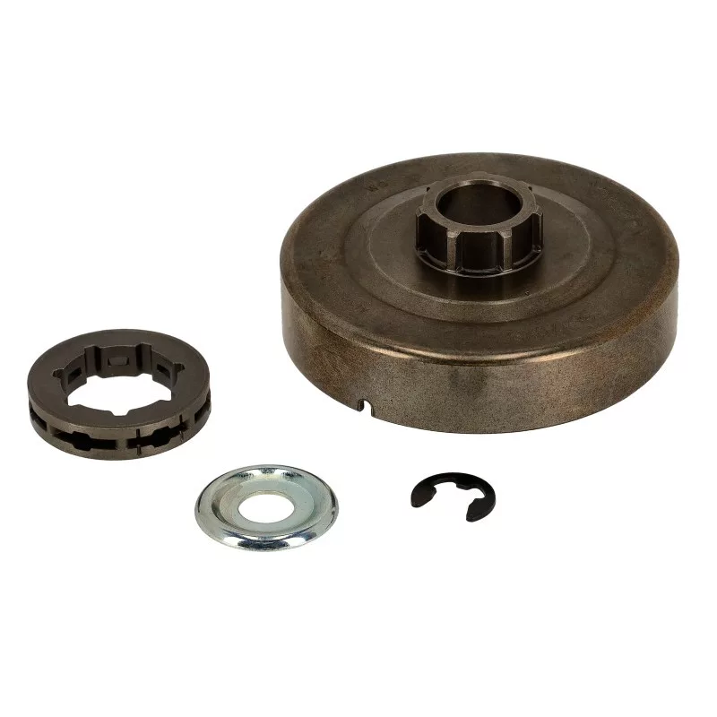 Kompatibilis típusok: Stihl: 044, 046, MS361, MS362, MS440, MS441, MS460Kuplungharang külső átmérő:79 mmKuplungharang belső átmérő:76 mmTengelyfurat átmérő tűgörgő nélkül:16 mmTeljes magasság:28 mmKivitel:betétes (fogasív 3/8-7, 22 mm)Fogak száma:7Osztás:3/8