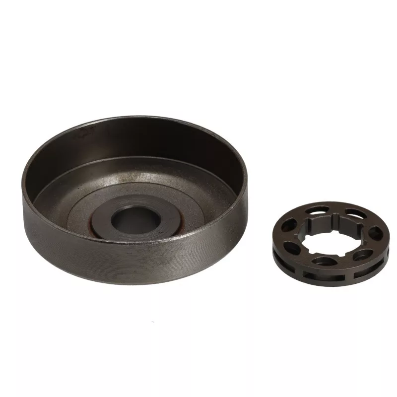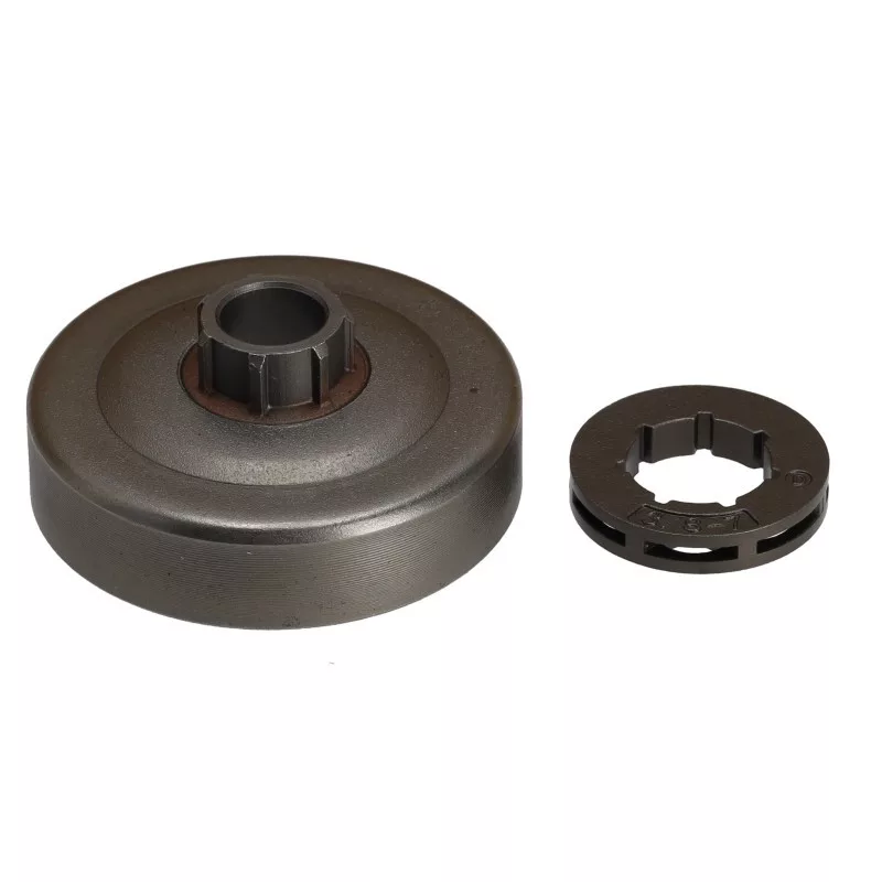 Husqvrana, McCulloch, Partner típusú láncfűrészekhez betétes csillagkerék, fogasívvel, tűgörgő nélkül. A teljes csillagkerék rendszer tartalmaz egy bordás kuplungcsészét és egy cserélhető betétgyűrűs kereket. A betétgyűrű szabadon fut a bordán, maximalizálva a lánc-láncvezető illesztést, míg a gyűrű cserélhető, ami meghosszabbítja a csillagkerék rendszer élettartamát, és növeli annak értékét.A rendszer simább vágást biztosít, és csökkenti a lánc ugrások számét és a lánc kopását.Típusok: Husqvarna: 136, 137, 142,235,236,236E, 240, 352, McCulloch: CS340, Cs380, Partner: 350, 351Külső átmérő:66,5mmBelső átmérő:62,7mmKuplungdob szélessége:17mmTengely átmérő:14mmMagasság:26,5mmFogasív osztása:325Fogasív fogszám:7Fogasív belső:kis (SM7)Típusok: Partner: 352, CS340, CS380, P350, P351, McCulloch: 352, CS340, CS380, P350, P351, Husqvarna: 136, 236, 236E, 240, 352, CS340, CS380, P350, P351,