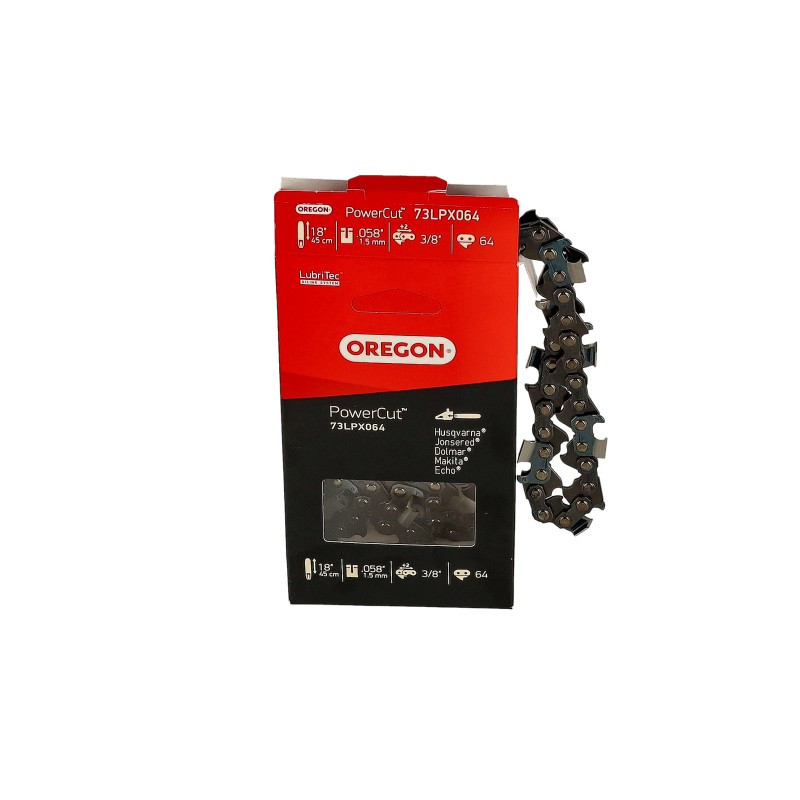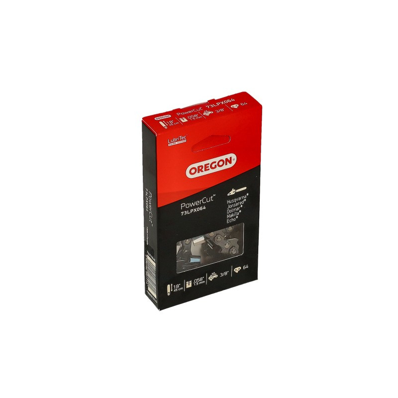 Oregon gyártmányú 64 szemes konfekcionált fűrészlánc.Ideális lánc a 3/8” osztású láncfűrészekkel dolgozó professzionális favágóknak. Csúcsteljesítmény az alacsony rezgésnek és az egyenes élű vágószemnek köszönhetően. Az eltolt mélységhatárolók megakadályozzák, hogy a vágószemek a vágásfalba marjanak és így sima vágást biztosítanak.Tulajdonságok:- A LubriTec™ a lánc és a vezetőlemez olajozásával biztosítja a kisebb súrlódást és a hosszabb élettartamot- A kékített vágószemek magas szintű korrózióvédelmet biztosítanak- A tetőlapon lévő jelzések megkönnyítik a pontosabb élezést- Az exkluzív OCS-01 acél fokozottabb tartósságot biztosítOsztás:3/8-1,5 mmSzem szám:64 szem