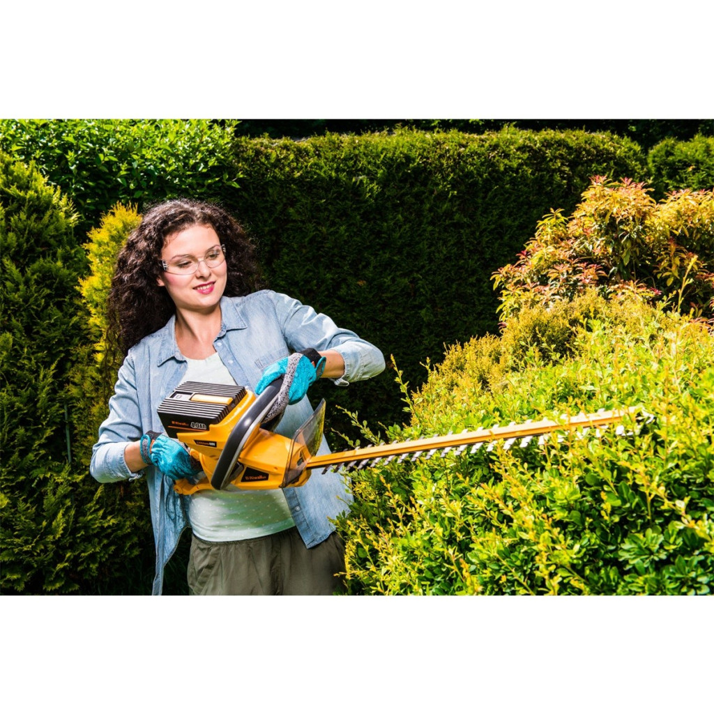 AKKU ÉS TÖLTŐ NÉLKÜL - minőségi nagy teljesítményű PowerBrush elektromotor - kertje gondozásának legkényelmesebb módja – magas teljesítmény, könnyű indítás, halk működés, zéró károsanyag kibocsátás, zéró szervizanyag (olaj, üzemanyag, gyújtógyertya, szűrő stb.) - lézerrel kivágott és gyémánttal élezett ellentétesen mozgó kések pontos és tiszta vágást biztosítanak - állítható markolat a különböző munkapozíciókhoz - ergonomikus csúszásgátló markolat, nagy biztonsági kapcsolóval a kényelmes munkához kesztyűben is - átlátszó kézvédő a vágás biztonságos ellenőrzéséhez - túlterhelés elleni védelem és késfék - bármely Riwall akkuval és töltővel kombinálható - 2 év teljes garancia az akkura – probléma esetén automatikusan újra cseréljük - a gép biztonságosan átment a neves német TÜV minősítő cég összes tesztjén - az akku és a töltő külön vásárolható Műszaki adatok Motor aku 40 V, PowerBrush Láncvezető hossz (mm): 560 Vágásszélesség (cm): 2,2 Átlagos üzemidő 40/80/120 min (akkumulátorral) Akkumulátor Li Ion 40 V Fordulatszám (fordulat/perc): 1300 Ellentétesen mozgó kések igen Súly (kg): 3.20