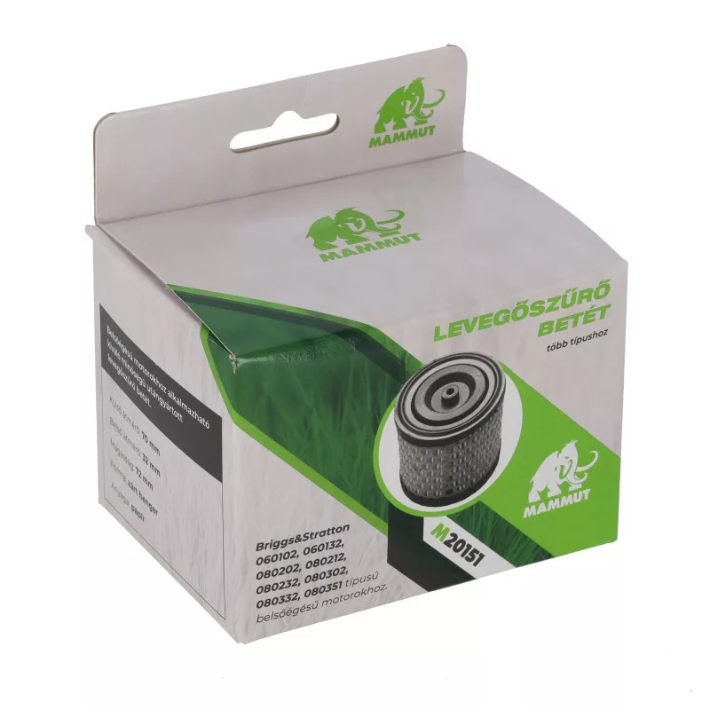 Hatékonyan védi a motort a szennyeződésektől. A minőségi papír szűrőanyag hatékonyan kiszűri a port, a fűszálakat és az apróbb szennyeződéseket, így megakadályozza, hogy azok a motor belsejébe kerüljenek. A tiszta levegő biztosításával hozzájárul a motor egyenletes működéséhez és optimális teljesítményéhez.Külső átmérő:70mmBelső átmérő:32mmMagasság:72mmForma:zárt hengerAnyaga:papírTípusok: MAMMUT: Briggs&Stratton,